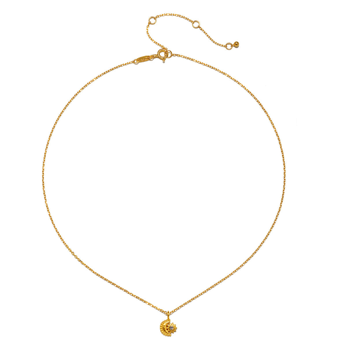 As the North Star guides you closer to your dreams, the goddess moon cradles you in her protective embrace. This 18kt gold plated necklace with a crescent moon, symbolizing the goddess and protection, cradles a star of white topaz, stone of clarity. Wear this necklace to manifest your dreams, and to light your sacred path.