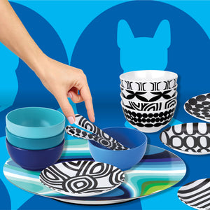 Add some graphic fun to your outdoor dining with the Black & White Appetizer Plate set from French Bull. These striking plates are perfect for poolside dining, serving snacks, finger foods, desserts and appetizers. Each plate is a unique design and comes in a beautifully packaged gift box. Crafted from high-grade, glazed melamine which is scratch and shatter resistant, non-absorbent, and BPA-free.