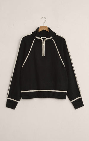 This oversized zip pullover is made with feather-like yarns and bold contrast stripes. Wear it with anything for an easy, elevated feel.
