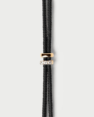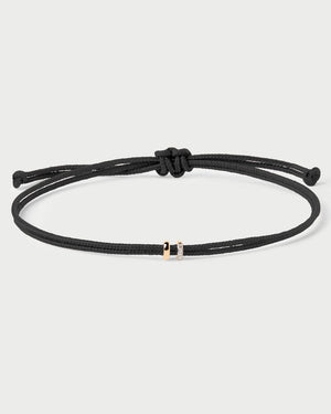 This adjustable diamond cord bracelet from PDPAOLA features three round lab-grown diamond on one gold slider, with a second solid gold slider.