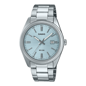 While you're checking the time, those around you will be checking you out! This stunning watch from Casio is sleek in it's silver band with light blue clockface.