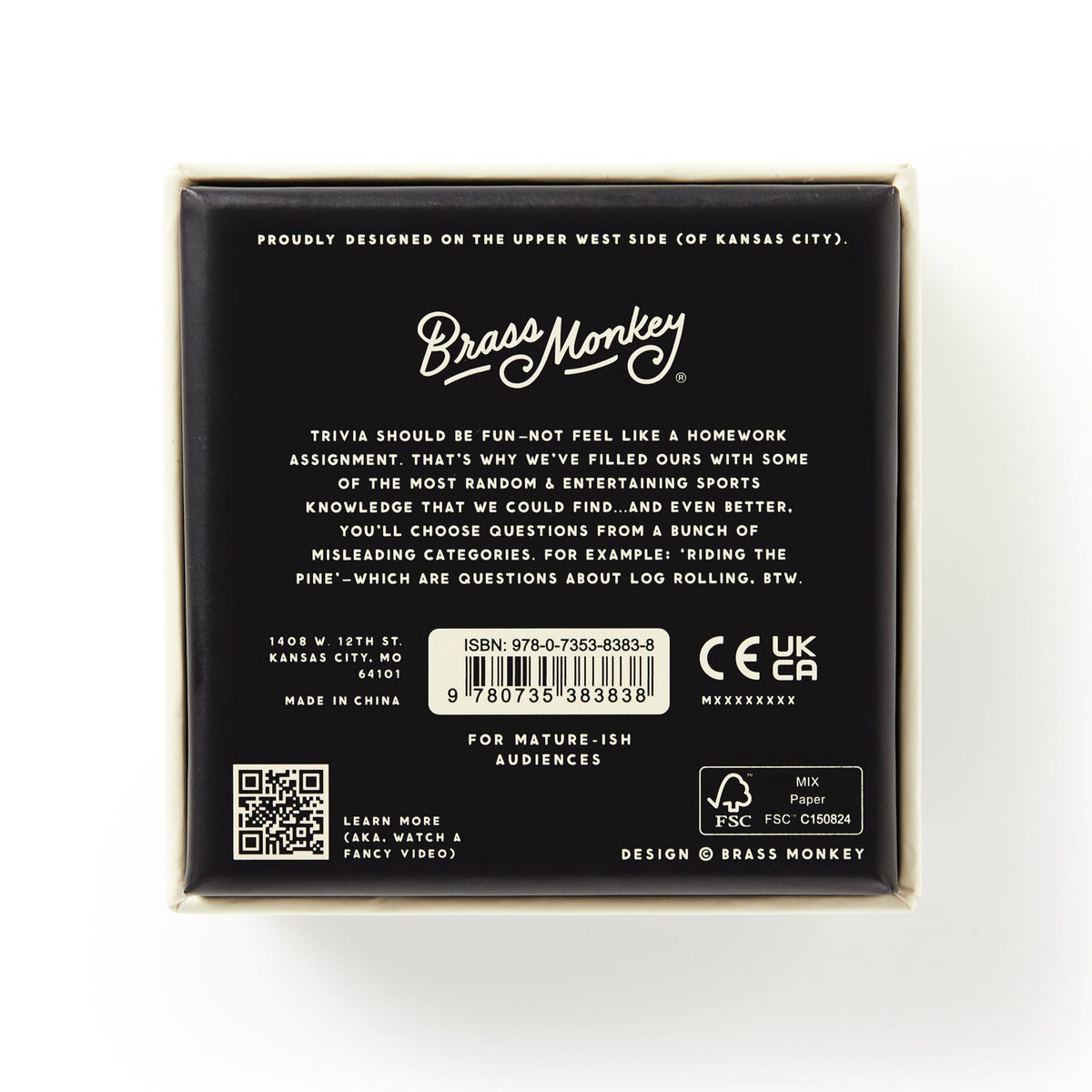 Weird Sports Trivia has the quirkiest facts and anecdotes from the wide world of athletics. From obscure sports origins to bizarre records, each trivia card will have even the most professional sports enthusiasts questioning their athletic history. We think trivia should be fun and not feel like a homework assignment. That’s why we’ve filled ours with as many weird and obscure sports facts as we could find…and even better, you’ll choose questions from a bunch of misleading categories. For example: “Riding the Pine” - which are questions about log rolling.