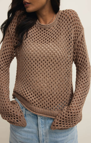 The Cala Shimmer Crochet Sweater combines airy open knit construction with understated shimmer for an effortlessly polished look. The delicate sparkle adds just enough luminosity without overwhelming, while the relaxed weave ensures breathable comfort. A perfect layering piece.