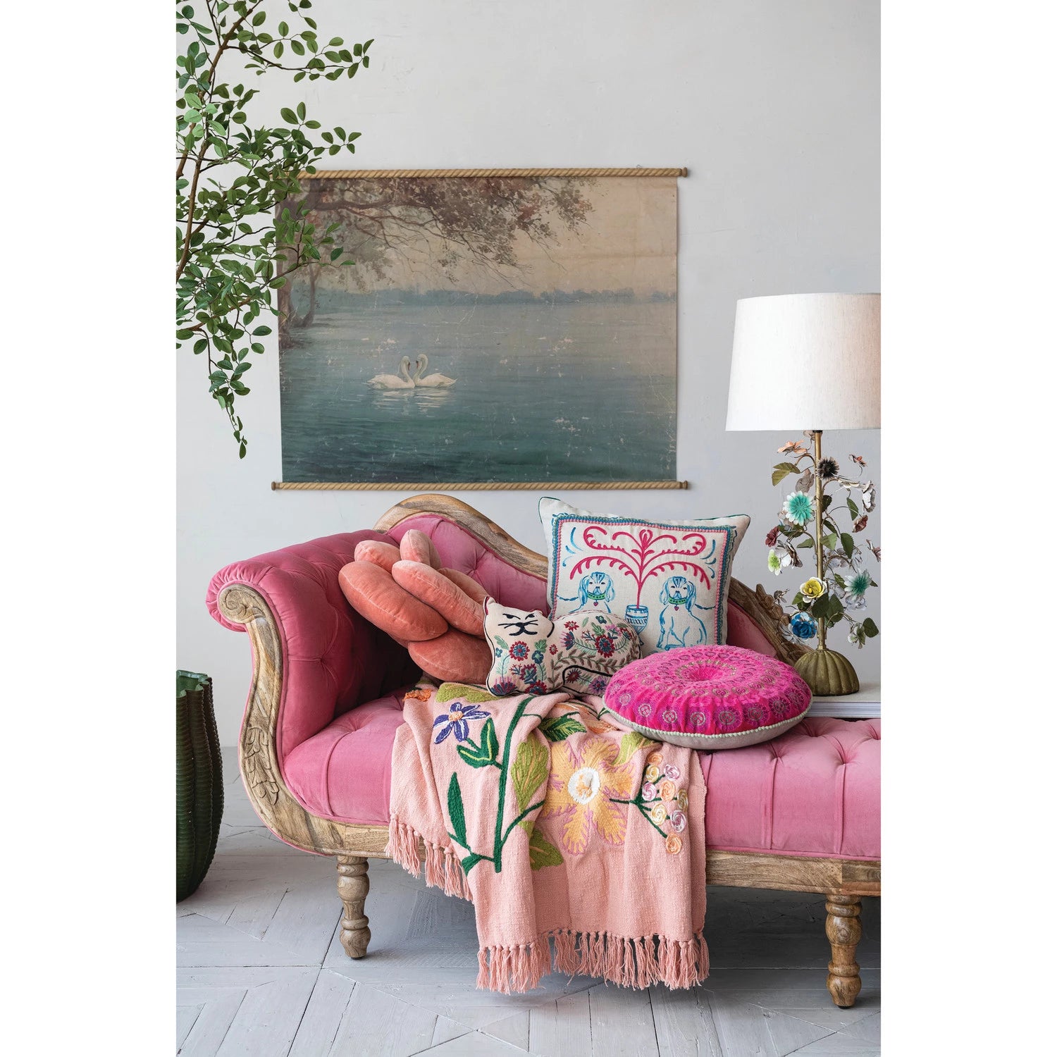 The purrrfect pillow has arrived courtesy of Creative Co-Op. This cat shaped pillow is embroidered with a colorful floral design perfect for accenting a couch or bed.