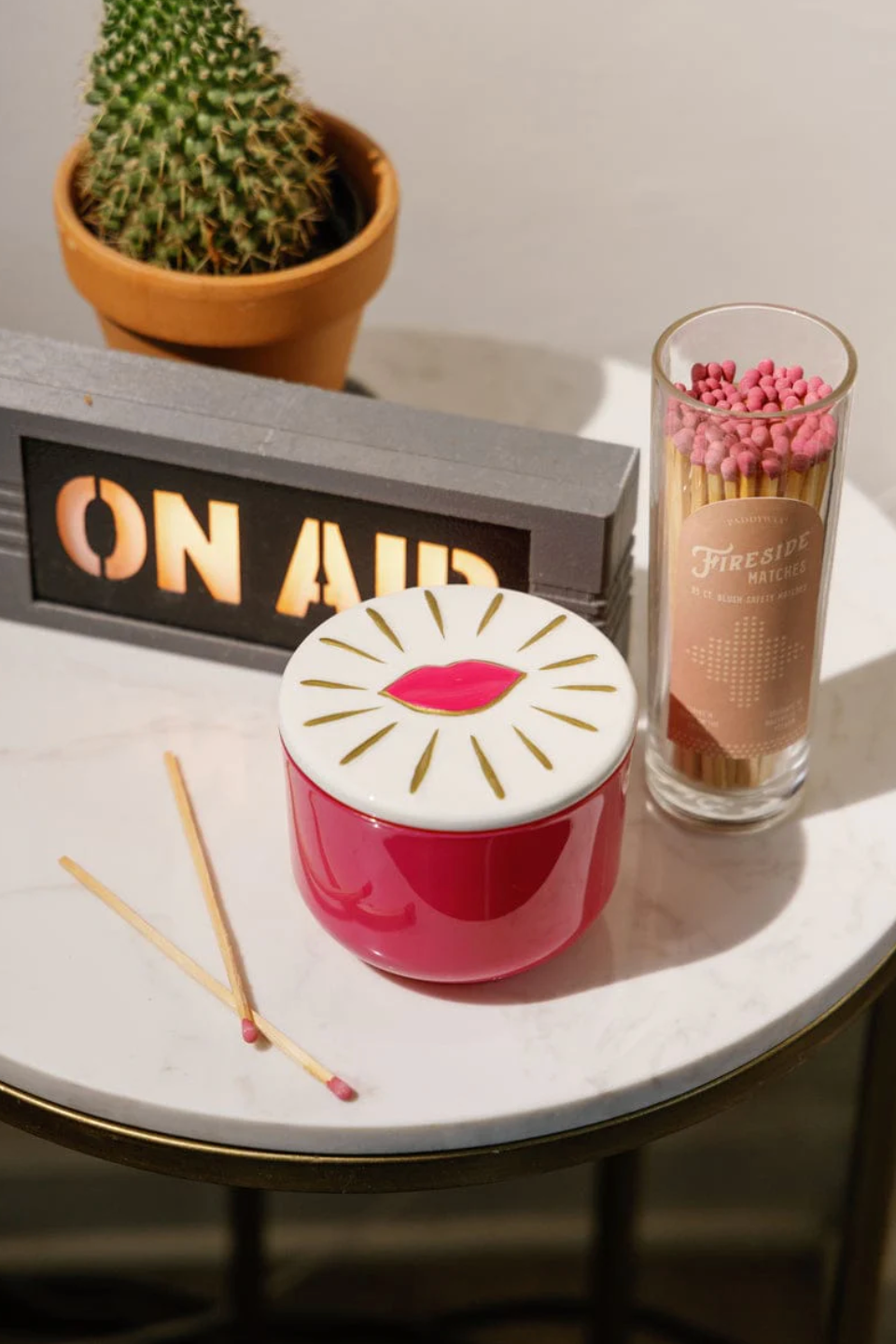 Seal it with a kiss. This flirtatious scent glows from a rosy pink glass vessel topped with a hand-painted ceramic kiss charm, framed by radiant gold rays for a playful, giftable finish.