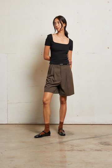 The Chloe top is your go-to piece for effortless elegance with a modern edge. Crafted from a signature luxe rib fabric, it features an exaggerated square neckline that beautifully frames the collarbone and adds a touch of drama. The fitted silhouette and short sleeves make it versatile enough to wear from day to night, while the soft rib knit ensures all-day comfort and a flattering fit.