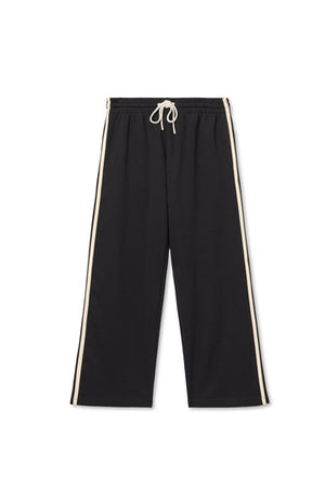 The claud pant from PWT is their take on the modern travel track pant. easy, drapey, and finished with two neutral colored stripes down the side seam for that subtle retro touch. M ade in a soft cotton-poly-spandex blend, it moves with you and keeps its shape, whether you're sprinting through terminals or settling in for a long ride.