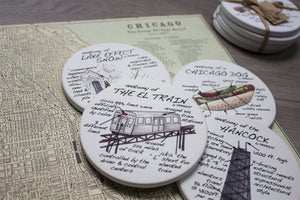 Save your surfaces and show your love for Chicago at the same time with these new coasters from Dishique! In a sleek square shape, enjoy 4 designs that each represent classic Chicago staples. Backed in cork and bundled with love, these coasters make gift giving a breeze. Learn a thing or 2 the next time you cheers a glass!