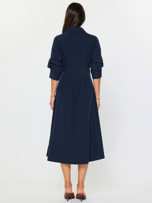 This button-down, classic collar dress with 3/4 sleeves is the perfect addition to your Spring wardrobe. Dress it up with a sweater or jacket with its fitted bodice and functional pockets!