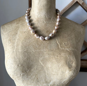 Drape yourself in the decadent beauty of the seas' greatest treasures! This stunning necklace from Robindira Unsworth features a bevy of baroque pearls in dancing hues of white, grey, and gold.