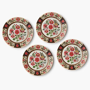 Elevate your table with these elegant Gracie-patterned dinner plates, featuring intricate, Jacobean-inspired florals, shimmering gold accents, and gold-painted edges.
