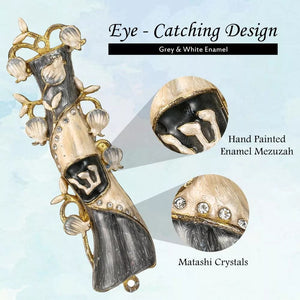Enhance the spiritual ambiance of your home with the Matashi Mezuzah, a beautifully crafted Judaica decoration designed to bring blessings and protection. This elegant mezuzah for the door is perfect for any Jewish home, combining traditional significance with modern design elements, making it a meaningful addition to your living space. Featuring a hand-painted design adorned with shimmering Matashi crystals, this mezuzah is as visually stunning as it is spiritually significant.