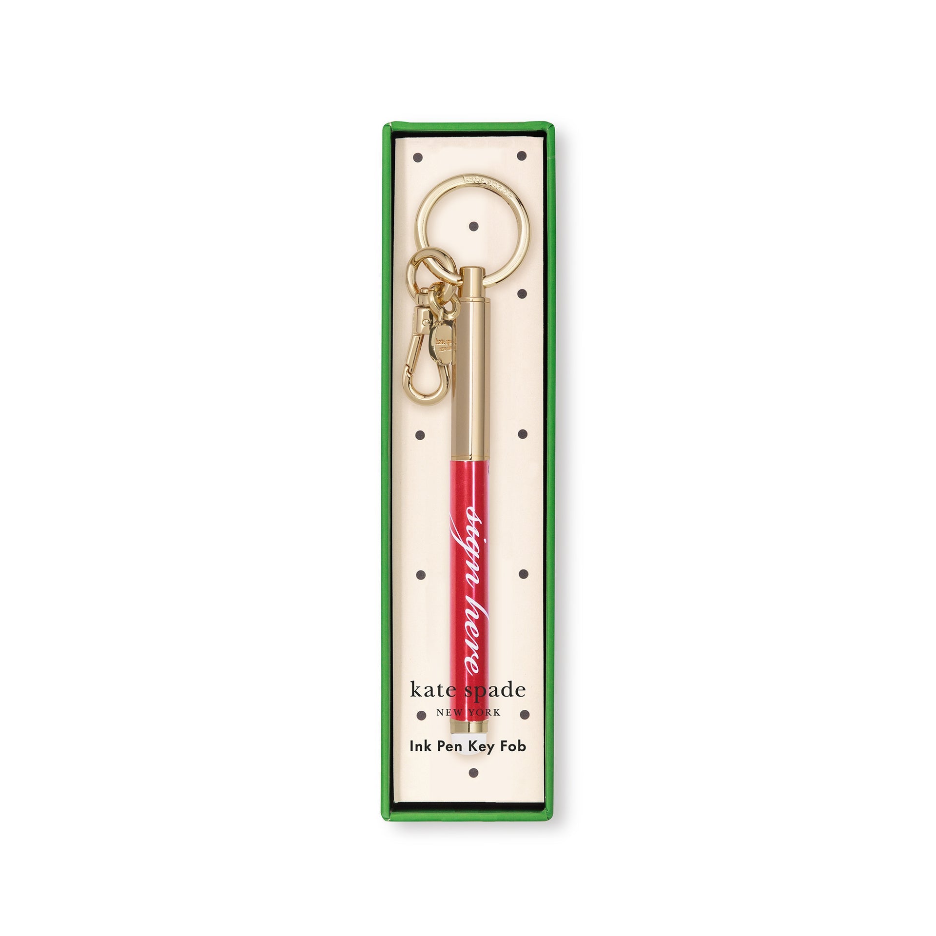 Keychain pen measures 4 inches long and features a gold spade logo charm and a "sign here" quote. We live in a digital world and this stylish, dual ended pen will keep you covered in every scenario