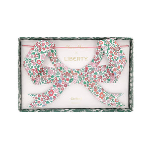 Meri Meri has collaborated with Liberty to create this showpiece Christmas bow garland. Bows are still in the spotlight, making this the perfect blend of elegant patterns and effortless style. Eight paper bow pennants, featuring festive Liberty floral prints, are strung on a soft dusty pink velvet ribbon for a timeless, sophisticated look. Drape it over a party table, staircase, or mantel, or hang it in a doorway, porch, or window for a beautiful touch you can enjoy year after year. Driven by discovery, Liberty has been home to the artistic shopper since 1875. Famed for its directional design and celebration of craftsmanship, its prints are created in the heart of London by the Liberty design studio.