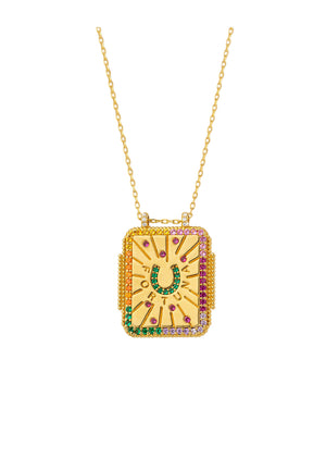 With its modern square design gilded with 24-carat recycled fine gold, it features a horseshoe engraved with the word "FORTUNA" , to attract luck in style. Around it, multicolored semi-precious stones bring shine, color and energy to this jewel like no other.