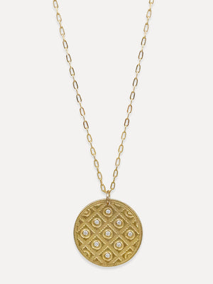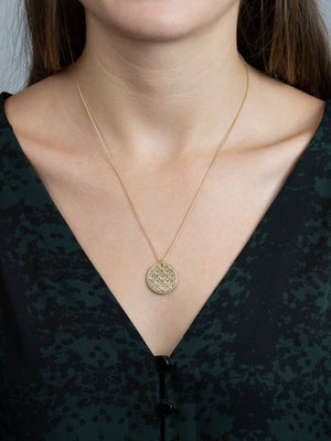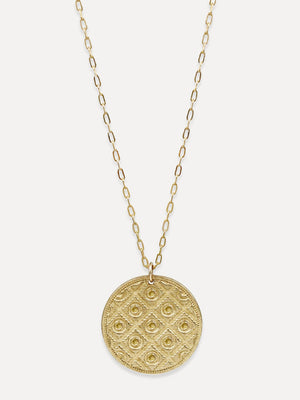Inspired by Moroccan tile designs, the Madras Necklace features a larger medallion with a repetitive dot pattern. This design echoes the symmetry and balance found in mandalas, perfect for meditation. Embrace the mantra "Free Your Mind" with this piece, and let it guide you in finding tranquility and focus in your daily rituals.