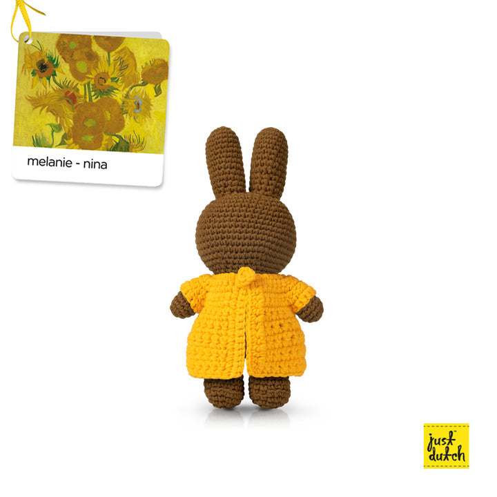 Just Dutch Melanie Handmade Crocheted Soft Toy. Enjoy Melanie in this beautiful yellow floral dress, inspired by Van Gogh'sSunflowers.