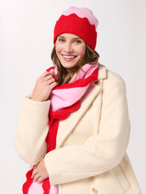Make chilly days cuter with the Melody Beanie, a playful cold-weather staple with bold contrast colors and a whimsical scalloped design. Its cozy knit construction keeps you snug while the fold-over cuff adds that extra bit of warmth. Available in a range of fun, eye-catching color combos, this beanie is anything but basic. Whether you're heading out or hunkering down, it’s the perfect accessory to brighten up your winter.