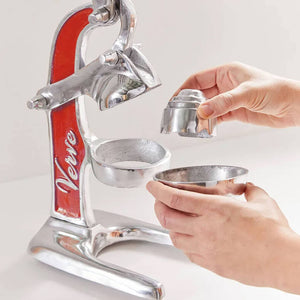 Indulge in the exquisite taste of fresh citrus juice with our small Artisan Citrus Juicer from Verve Culture. Expertly handcrafted from 100% recycled aluminum, it's perfect for juicing small citrus fruits like limes, lemons, and tangerines. This compact yet durable juicer is a must-have for any home chef or bartender!