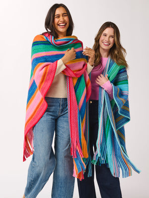 Meet the Nicola Cape – your new go-to for adding bold personality to chilly days. With its vibrant, chevron-inspired stripes and playful fringe trim, this cozy layering piece brings color and movement to any outfit. Designed with an easy, open-front silhouette, it drapes effortlessly over sweaters, tees, or even lightweight jackets. Whether you're heading out or staying in, this cape delivers major cozy vibes with standout style.