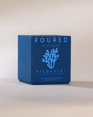 Hand-poured in Hudson, NY using our exclusive soy & coconut wax blend and eco-friendly cotton wicks. The 20 oz double-wick candles offer 90 hours in bold, hand-dyed glass.