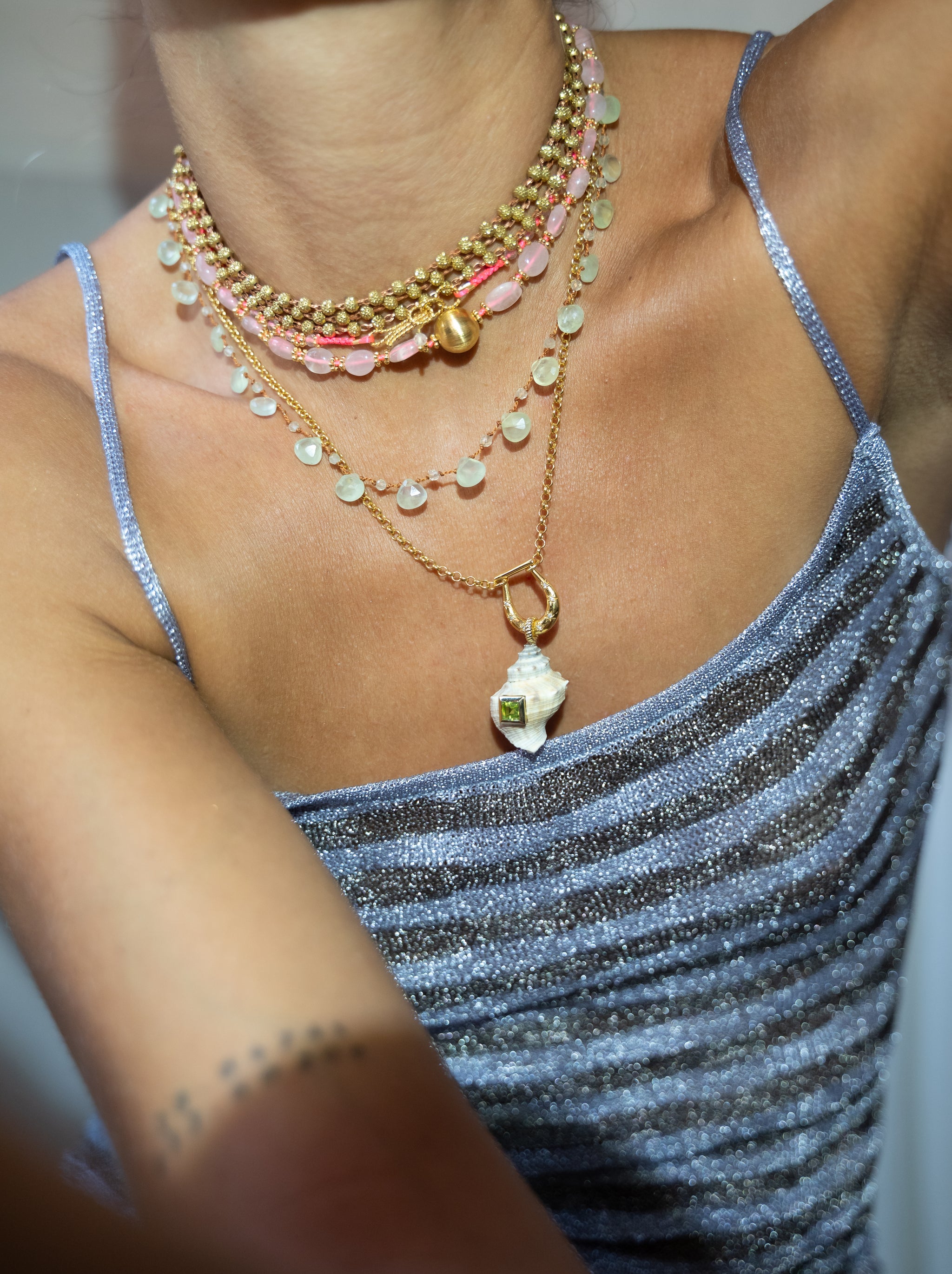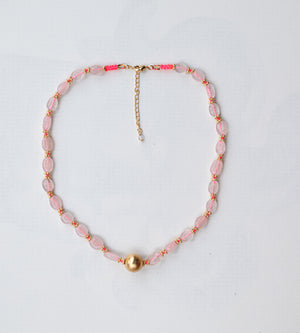 Spread the love with the Raki Necklace from Clara Forno Ikigai. This beautiful rose quartz necklace features a larger golden ball at it's centerpoint for a unique and feminine look.