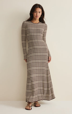 With day to night versatility, this maxi dress is an instant favorite with its ribbed fabric, long sleeves, and tonal stripe print. It’s comfortable and chic, which is always our favorite combo.