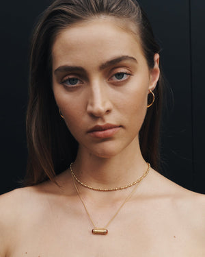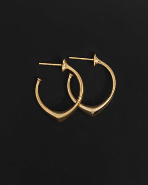 Handcrafted in 18k gold vermeil, these open hoop earrings are distinguished by their angular silhouette, with a polished knife-edge profile that tapers to a soft point. Sleek and sculptural, their reflective surface catches the light with each movement.