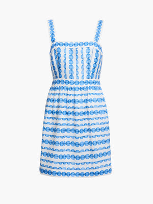 Short, sweet, shell-stamped. French Connection's Structured Taffeta Mini Dress features a soft, shape-holding silhouette with a square neckline, straps and bold geometric shell pattern for confident impact. With a back zipper and side pockets.