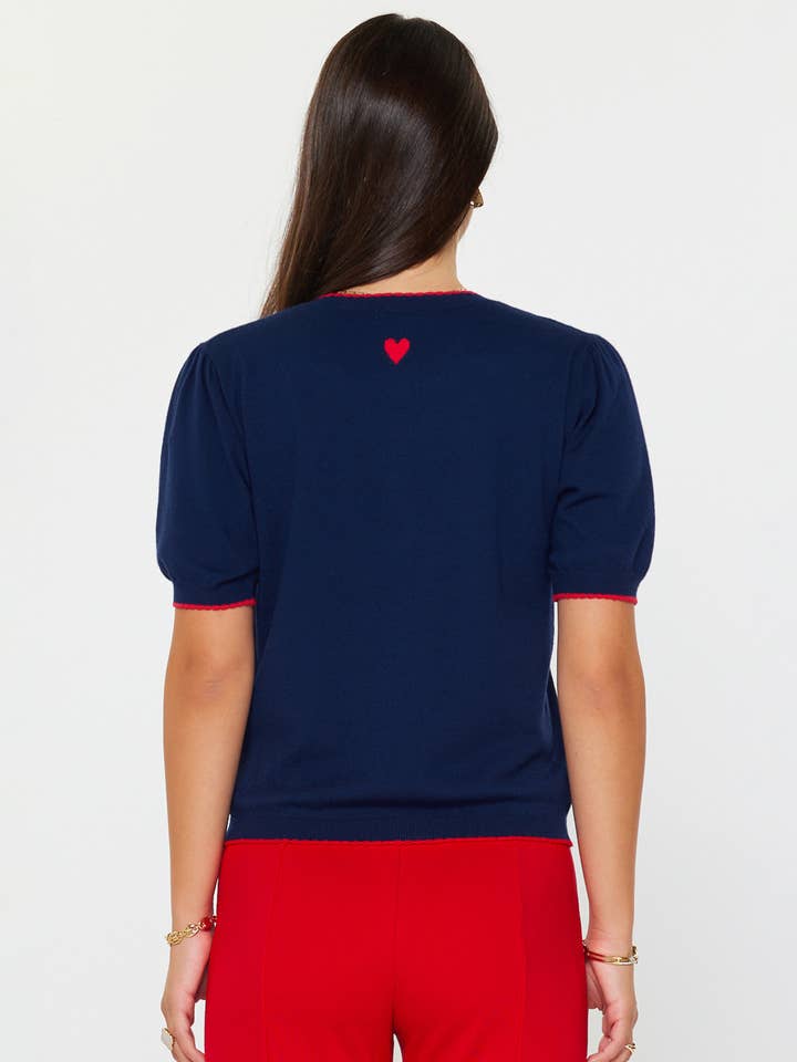 This polished short-sleeve knit top features contrast trim detailing at the collar, placket and hem. The Contrast Edge Top is a fine-knit crewneck that pairs a fitted waist with slightly puffed short sleeves for a refined silhouette. Wear it tucked into tailored trousers or with jeans for a smart-casual look.