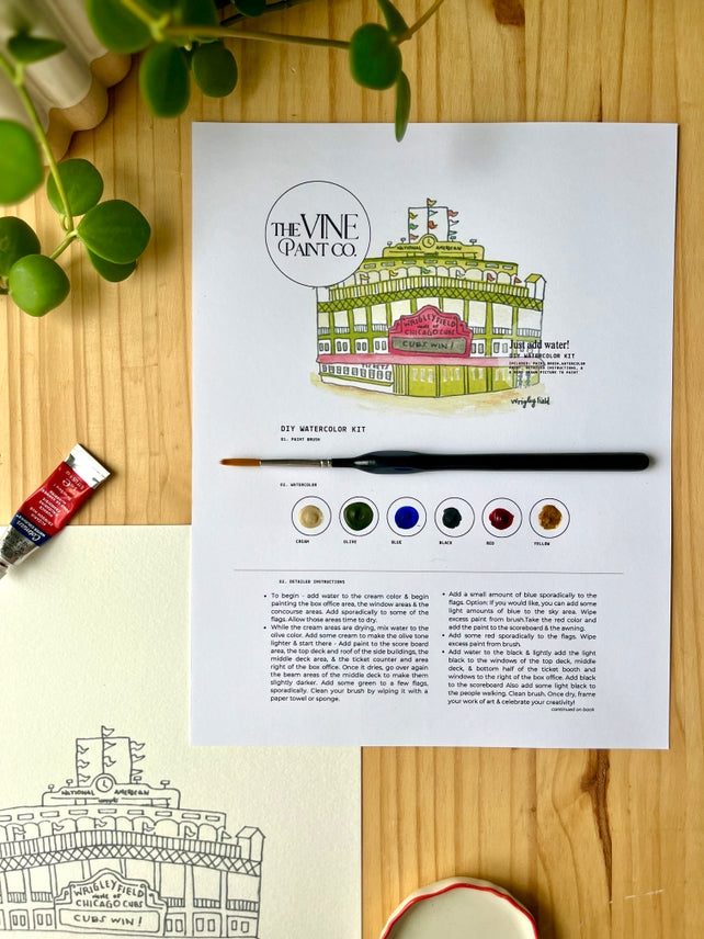 Chicago DIY watercolor paint kit has everything included, just add water! Each kit comes with detailed instructions, custom watercolor paints to the image, a paint brush, and a hand drawn sketch for you to paint. There is also an added piece of thick cardboard for easier displaying & extra protection. Perfect to do alone as a pause & reset or grab a few kits and paint with wine & friends! For Chicago lovers only!